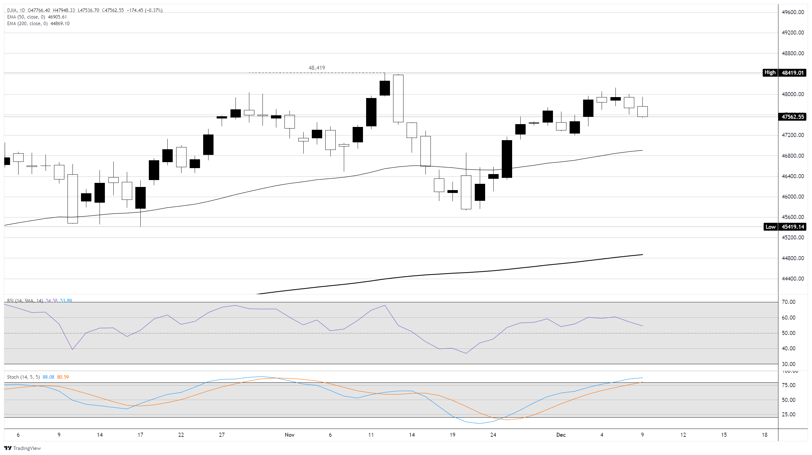 投资者几乎完全关注美联储12月10日的利率决策,广泛预期将连续第三次下调25个基点。标准普尔500指数(SP500)上涨0.1%,纳斯达克上涨0.2%,而道琼斯指数小幅下滑,跌幅為0.35%。美联储基金期货现在暗示降息的概率约為87%,较一个月前大幅上升。交易员表示,美联储最新的利率决定结果,尤其是美联储主席杰罗姆-鲍威尔在他最后一次利率决定新闻发布会上的政策立场,可能会為12月剩馀时间定下基调,因為市场权衡著持续的通胀、延迟的经济数据以及2026年新美联储领导层的漫长过渡期