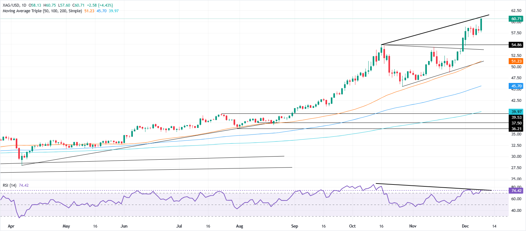 白银价格分析:创下历史新高,但RSI背离暗示需保持谨慎