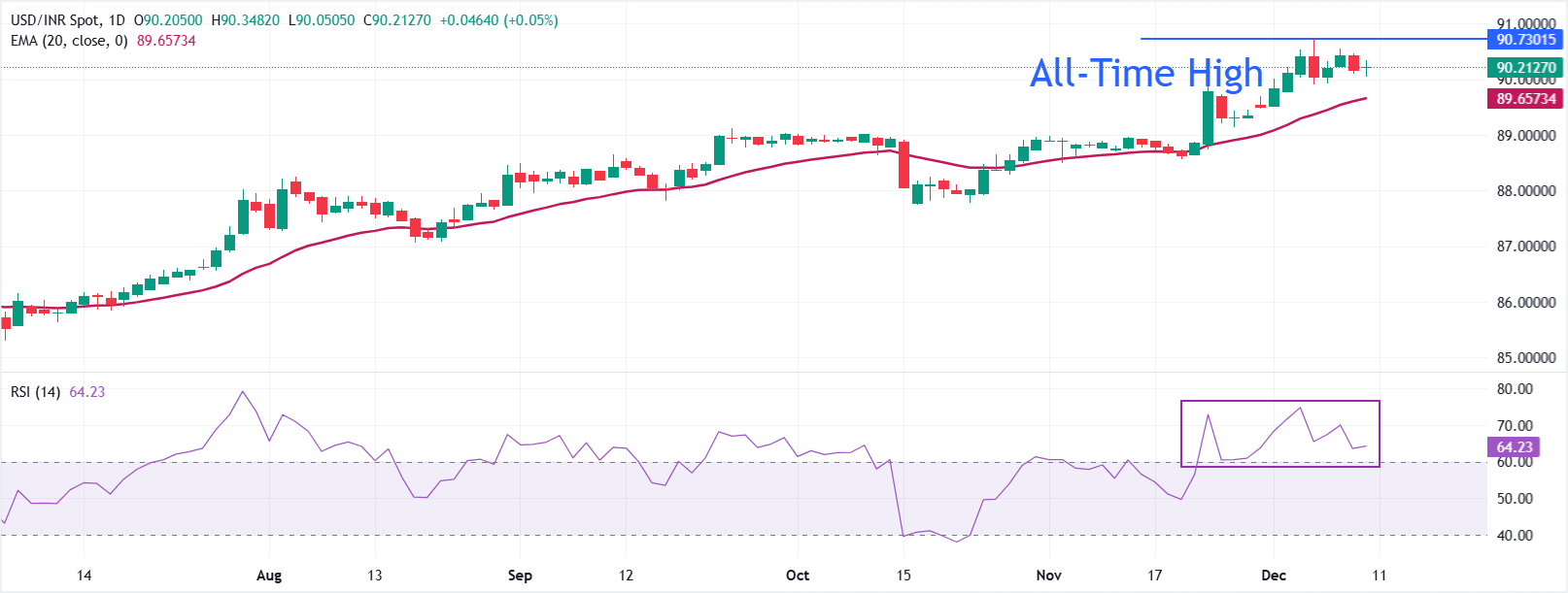 技术分析:美元/印度卢比目标重访接近90.70的历史高点
