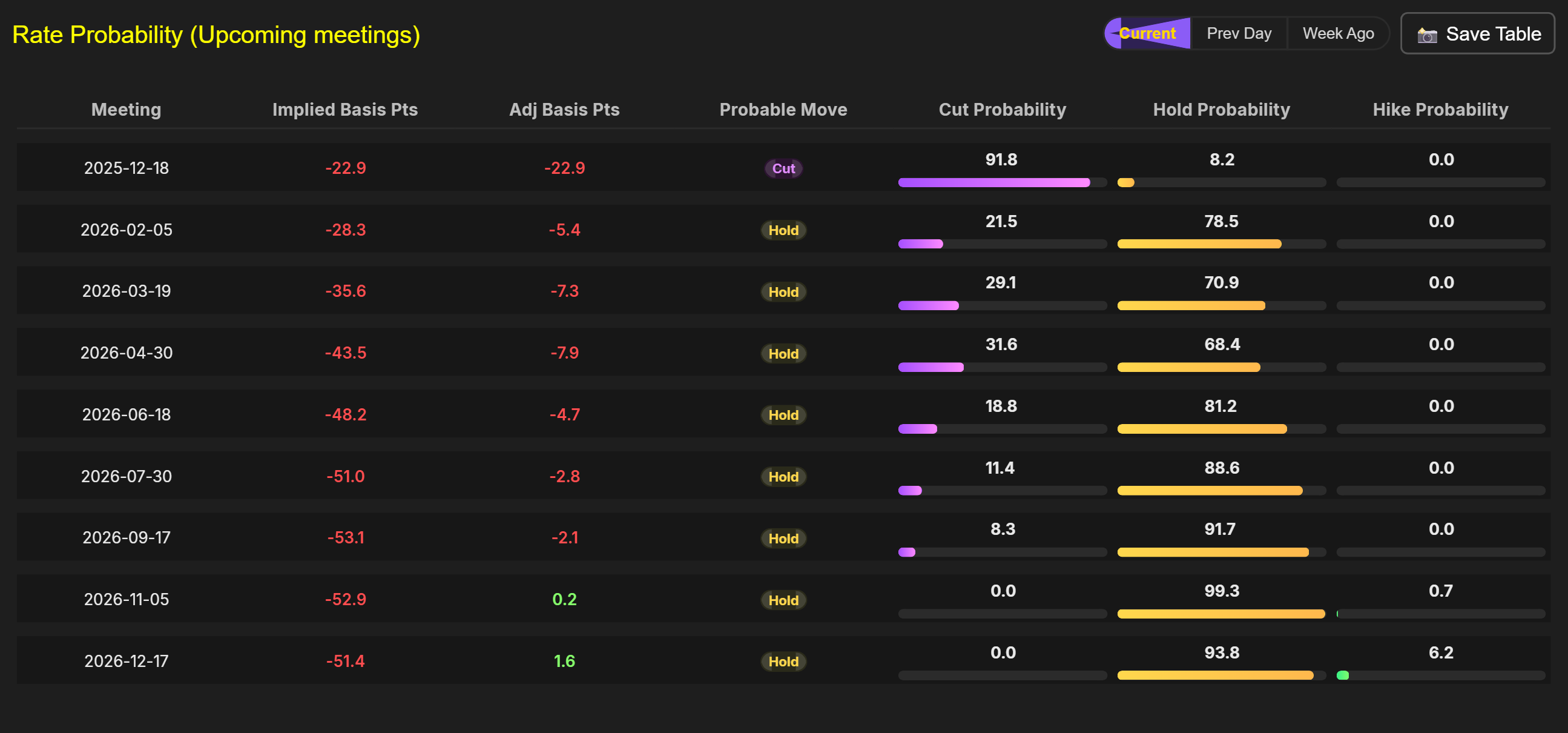 Capital Edge显示,英国央行在12月18日会议上降息25个基点的概率接近92%,交易者还预计2026年将有额外的降息。