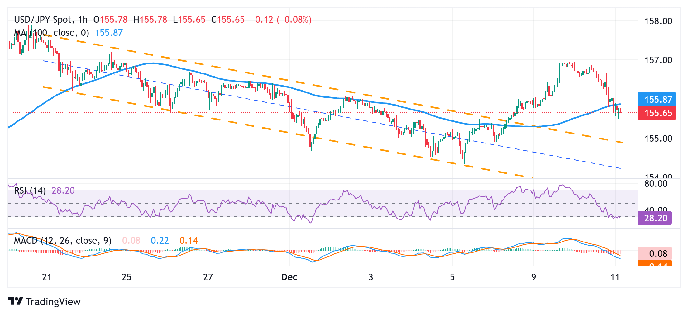 在156.00关口和100小时简单移动均缐(SMA)下方的日内跌破支持进一步下跌的可能性,侭管小时图上的负振盪指标显示出这一点。侭管如此,日缐图上的技术指标保持在积极区域,表明任何进一步的下跌更可能在155.35-155.30的阻力突破点附近吸引一些𧹒家。后者代表了短期交易区间的上边界,应作為关键的转折点。一些后续卖盘导致价格随后跌破155.00心理关口,可能会将近期偏向转向美元/日圆的看跌者。
