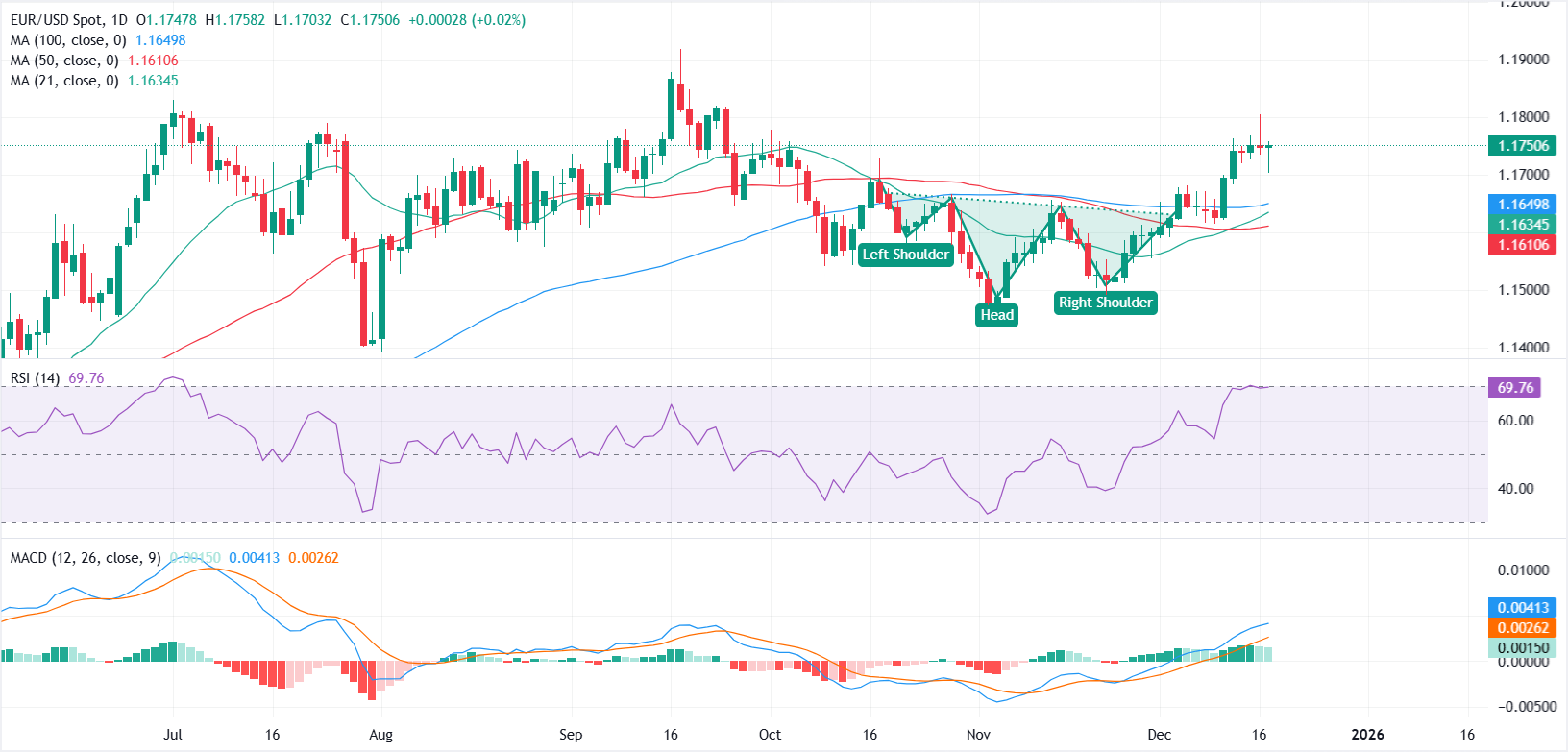 周三,欧元(EUR)对美元(USD)反弹,此前受到压力,因美元的短暂复甦减弱。撰写时,欧元/美元交易于1.1750附近,从日低约1.1703反弹。
