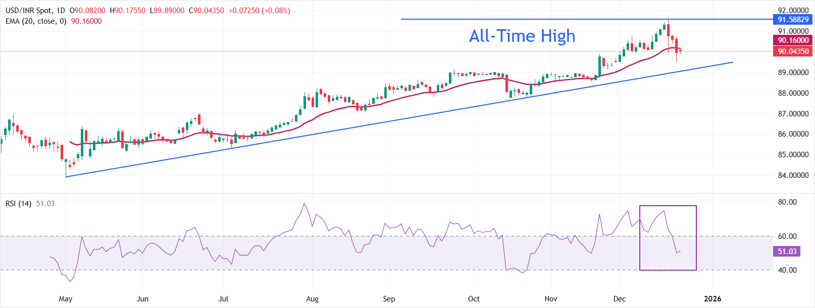 技术分析:美元/印度卢比在89.10附近看到即时支撑