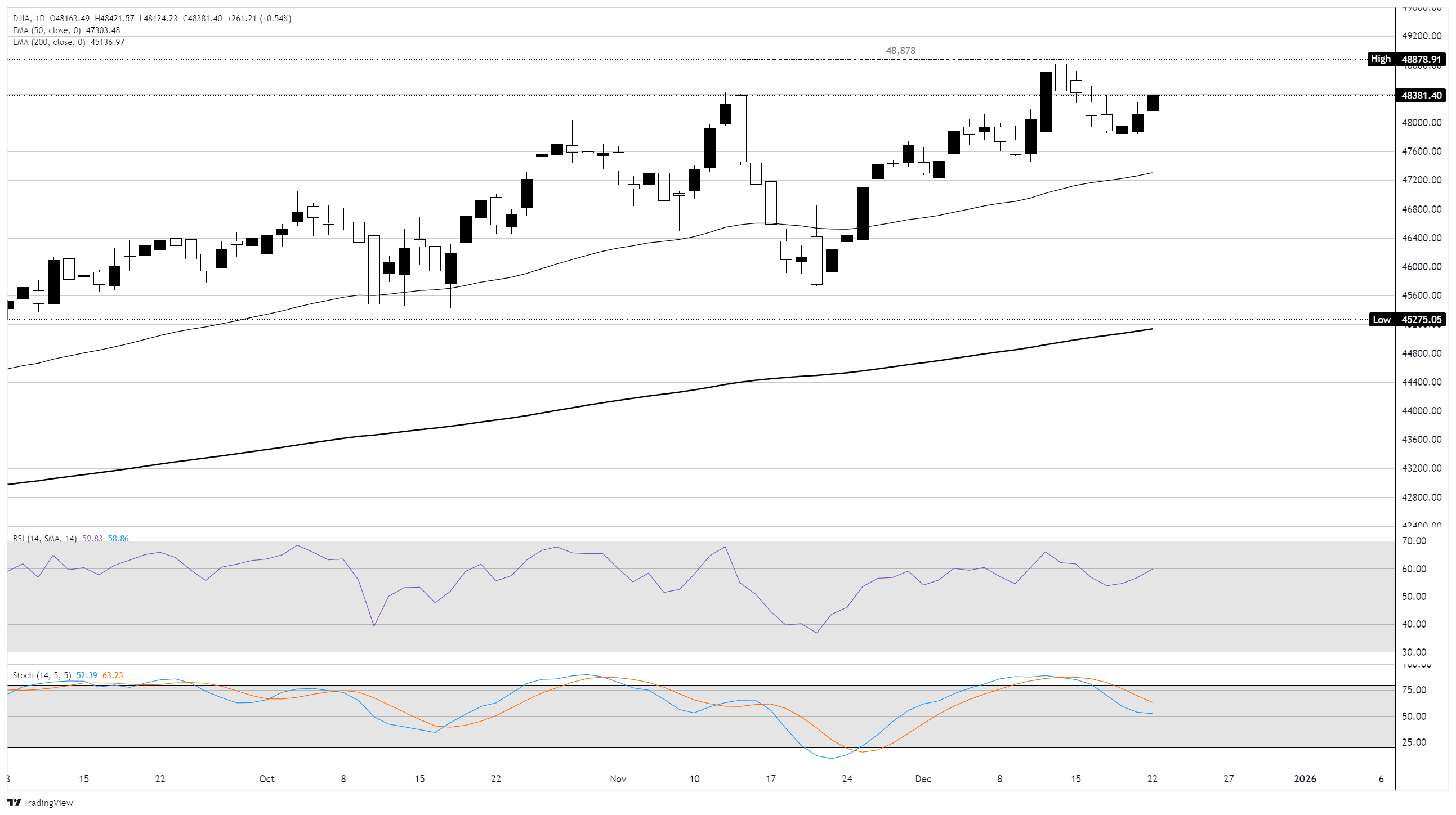股市正在向高位扭转,以结束2025年交易窗口的剩馀时间,希望能激发最后一刻的圣诞老人反弹,但时间不多,预计本周早些时候股市将提前关闭。纽约证券交易所(NYSE)将在周三GMT时间18:00(东部时间13:00)提前关闭。随著假期的临近,波动性可能会上升,但整体市场动能在新年到来之前可能会保持低迷,因為投资者选择观望。