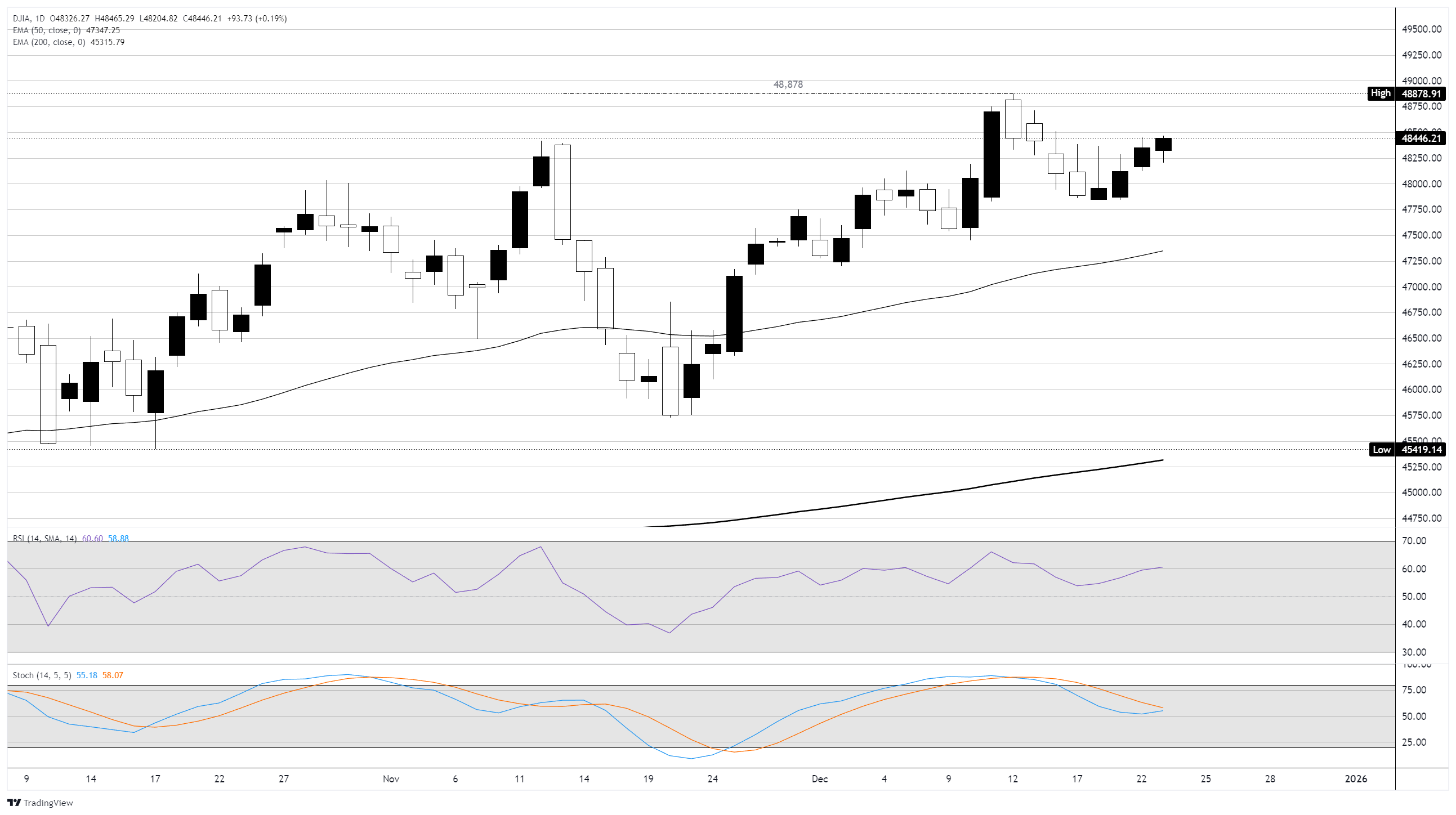 随著美国市场将在平安夜提前关闭,并在圣诞节当天休市,投资者在假期期间进入市场时,股市接近创纪录水平,受到对科技领导力、韧性经济和未来宽鬆货币政策前景的乐观支持。