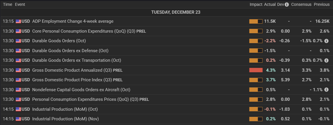市场消化了一份延迟但备受关注的经济报告,显示美国国内生产总值(GDP)在第三季度以4.3%的年化速度增长,显著超出预期。增长主要得益于消费者支出的韧性,较上季度有所加速。意外的上行惊喜在交易时段初期短暂扰动了市场,投资者重新评估美联储(Fed)可能多快降息。侭管最初有所犹豫,但随著交易者保持对明年多次降息的信心,股票恢复了上涨。