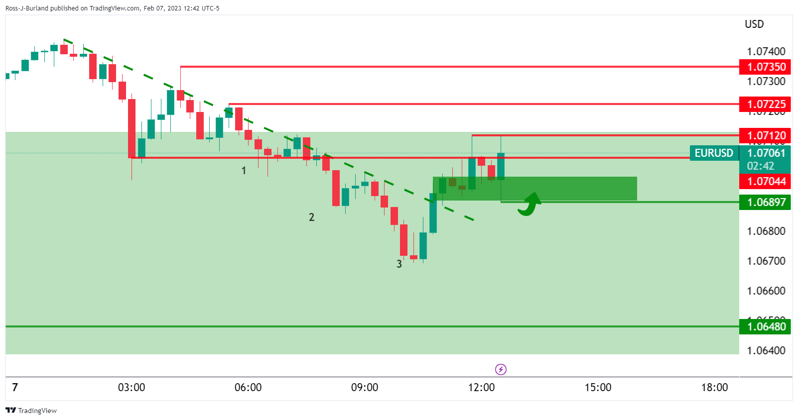 美联储主席鲍威尔发表鹰派讲话后,欧元/美元上涨。