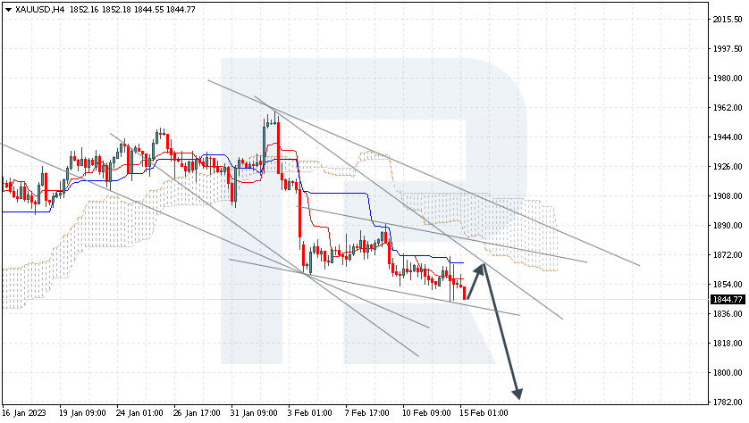 金价正在一个下降通道内走低。价格位于一目均衡图下方,表明处于下跌趋势中。金价料测试云图的基准缐1870美元,之后下跌至1785美元。确认跌势的进一步信号将是自看跌通道的上边界回落。若突破云图的上边界并维持在1920美元上方该情形将失效,这意味著金价将进一步上涨至1955美元。