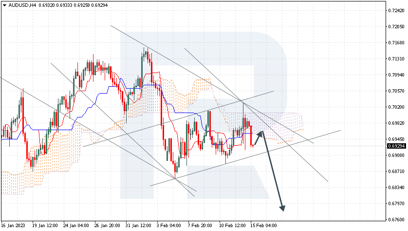 澳元兑美元自阻力水平回落后调整。汇价位于一目均衡图下方,表明处于下跌趋势中。该货币对料测试云图的下边界0.6955,然后下跌至0.6775。确认跌势的进一步信号将是自下降通道的上边界回落。若突破云图的上边界并维持在0.7025上方,该情形将失效,意味著汇价将进一步上涨至0.7115。若跌破看涨通道的下边界并维持在0.6875下方将确认跌势。