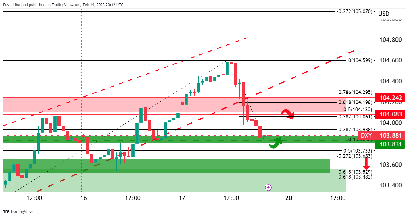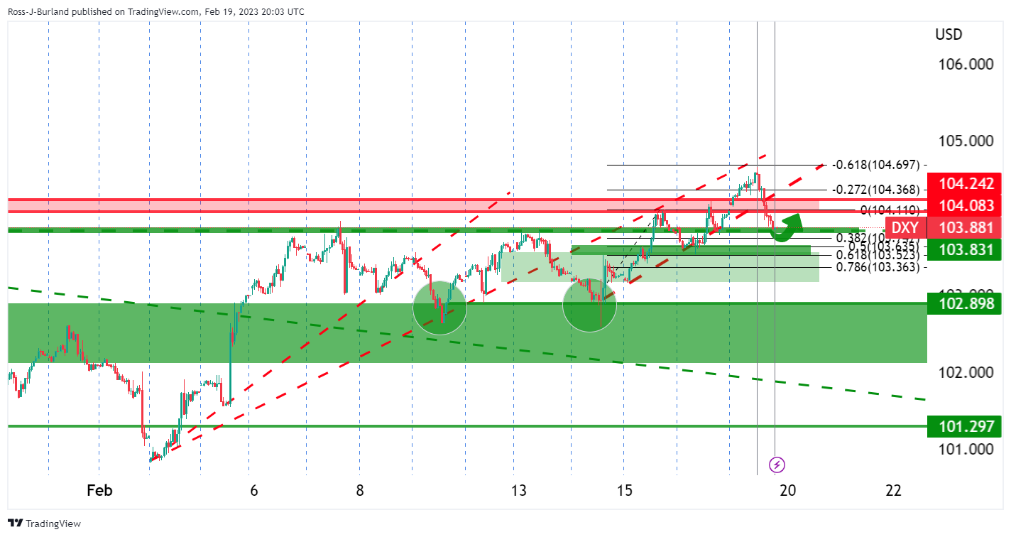 以美元指数衡量的美元上周五大幅下跌,上图和下图显示美元可能会出现在被视為支撑区域附近展𫔭整理: