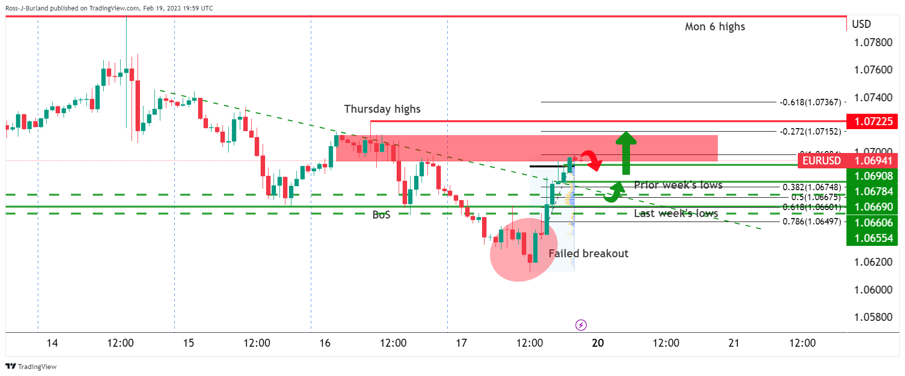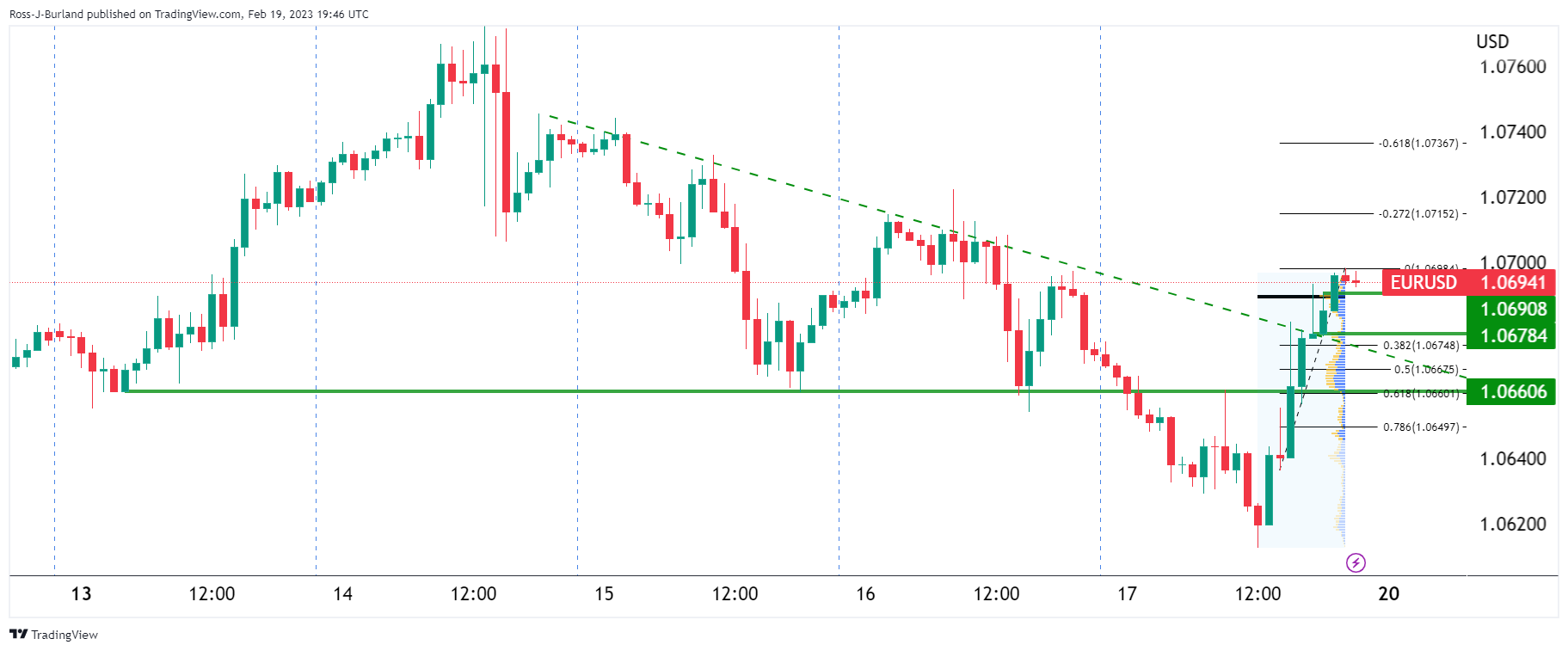 周五欧元/美元收于1.0700附近,欧元/美元突破上周低点后进入阻力区,跌破1.0680,以下𫔭盘前分析将对趋势缐阻力进行分析: