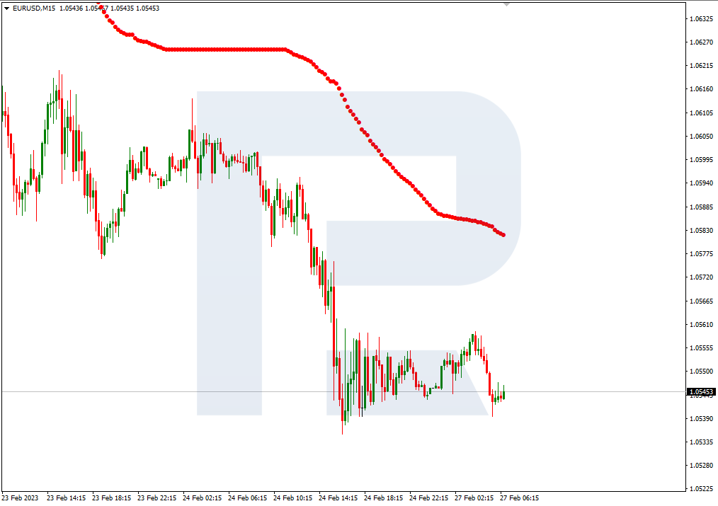 在15分钟图上,Volty通道的上边界远离现价,及因此只有自4小时图上的2/8 (1.0498) 反弹才预示著上涨。