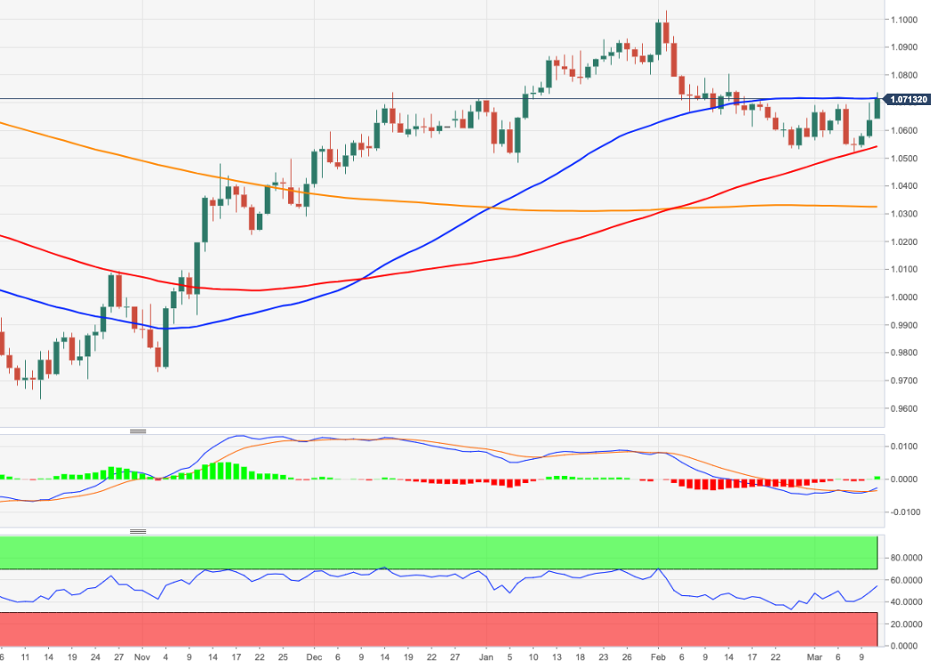 欧元/美元在本周初延续𧹒盘兴趣,在1.0700上方刷新了几周高点。