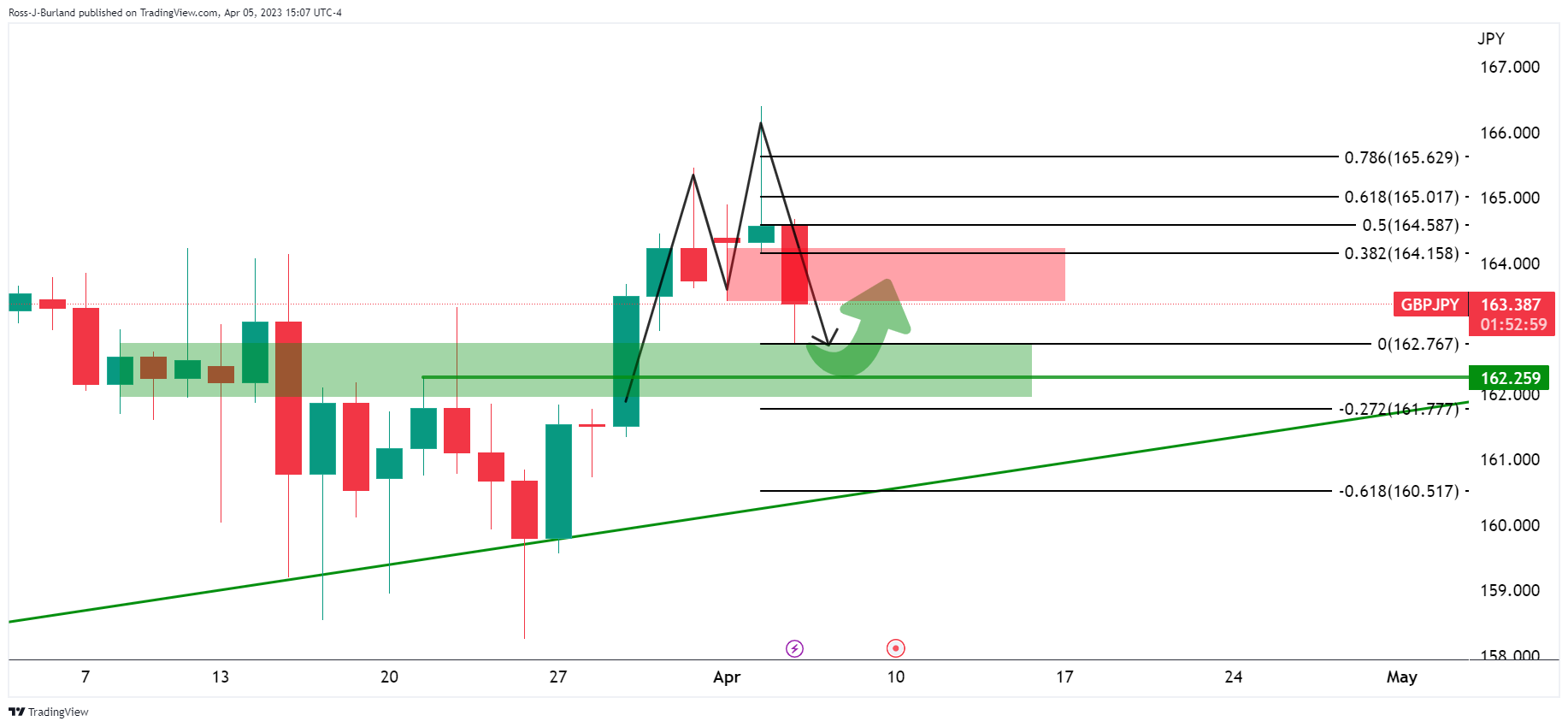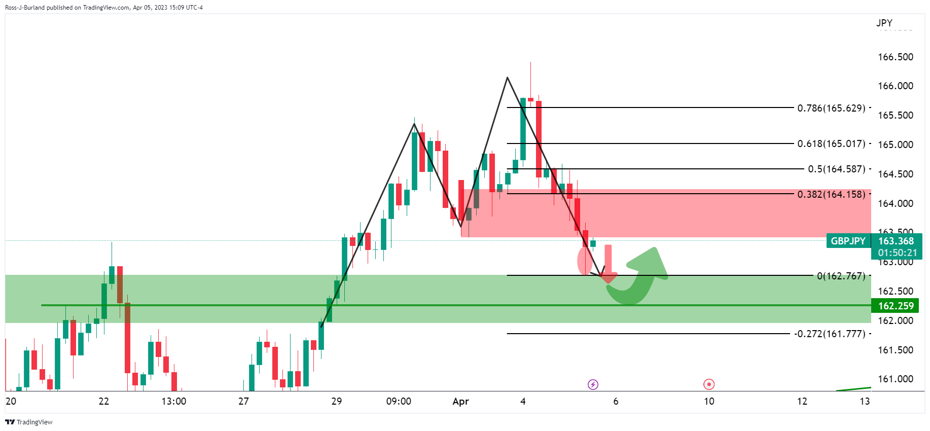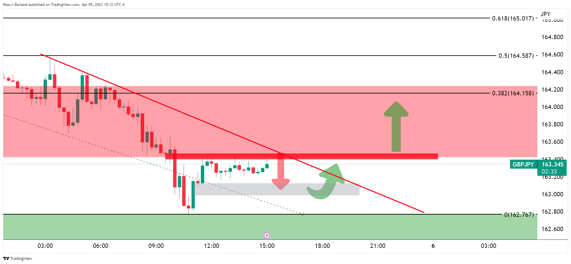 英镑/日元维持看跌,填补4小时图K缐,将缓解15分钟图上的价格失衡,重新测试163关口。多头需要在看跌趋势背面走强,此后突破163.50水平阻力。