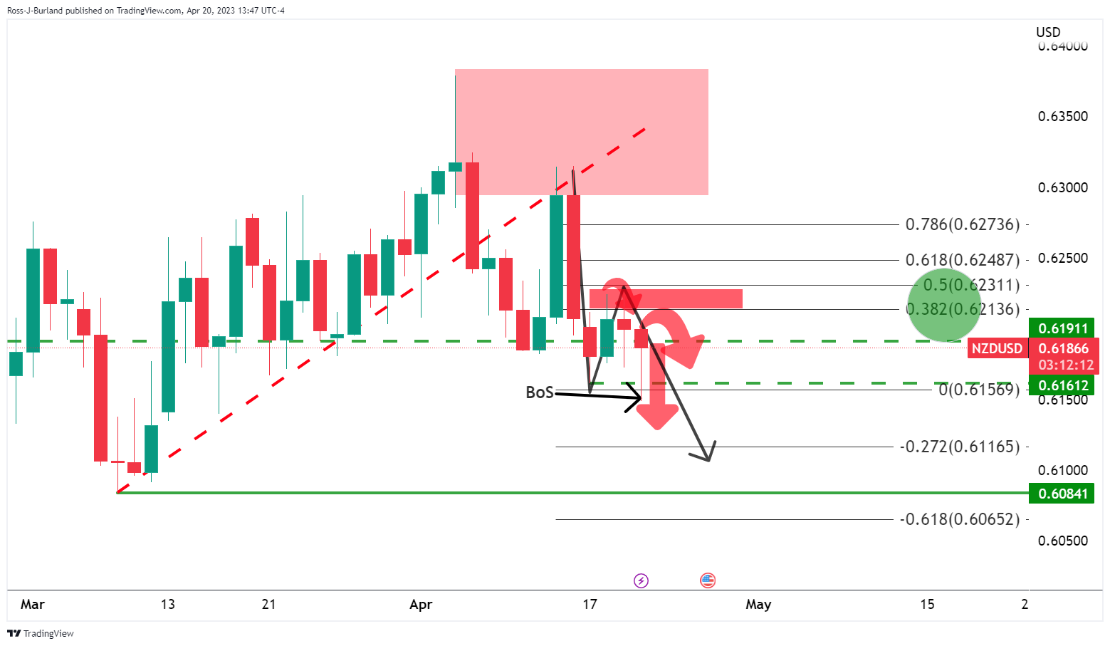根据前期分析,纽元/美元价格分析:空头寻求延续跌至0.6120,纽元/美元仍倾向于看跌,下面将说明。