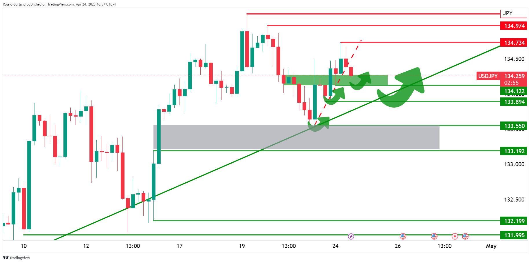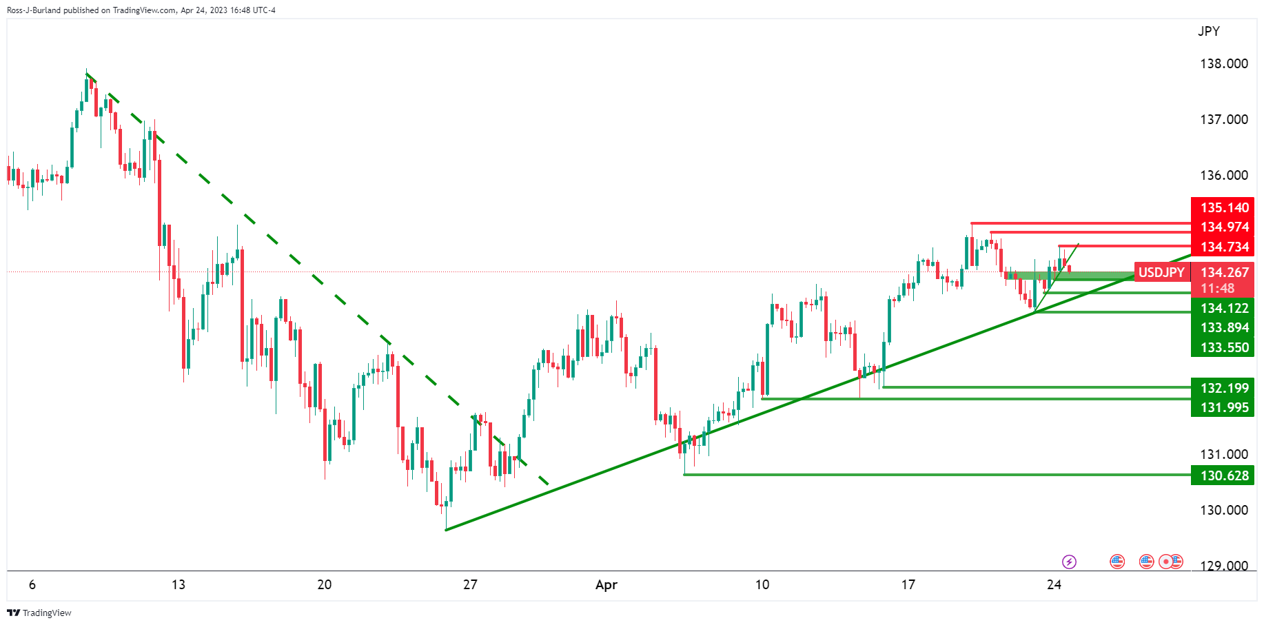 美元/日元当日上涨,在从133.89的低点弹出并上涨至134.73后,迄今為止美元/日元上涨约0.13%。多头一直守住趋势缐支撑,并处在133.50上方。