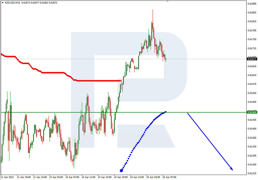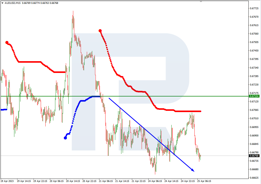 在15分钟图上,Volty通道的下边界已被突破。这表明价格处于下行趋势中,进一步下跌的概率很大。