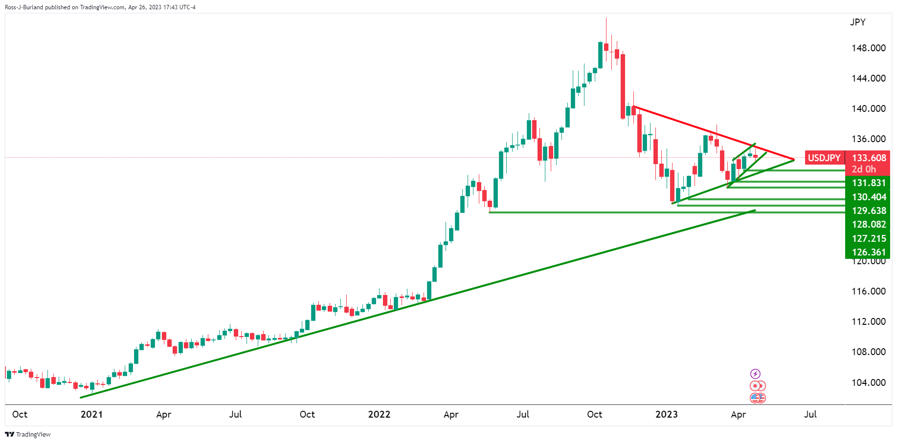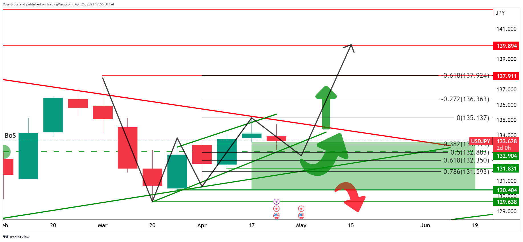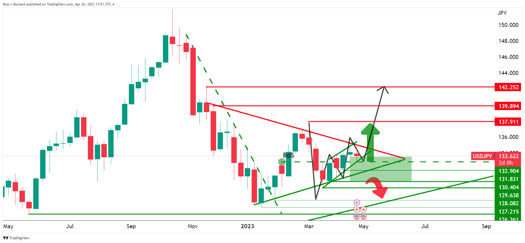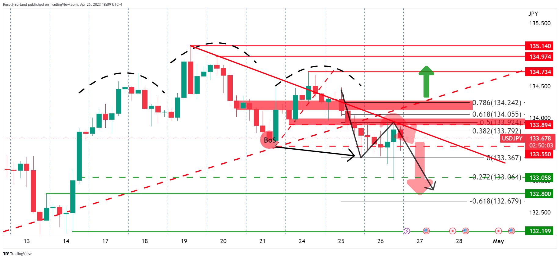 美元/日元价格分析:多头再度遇阻,空头指向132.80附近