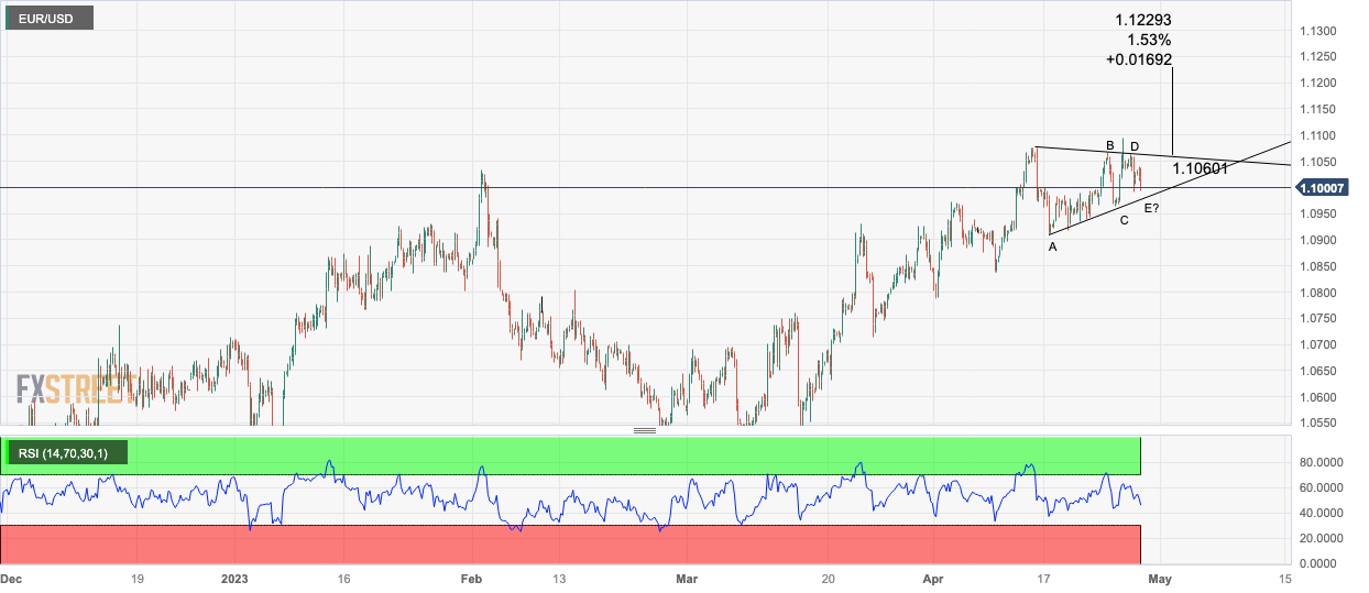 在欧元区GDP数据和政策决定之前,欧元在1.10附近的三角形内盘旋