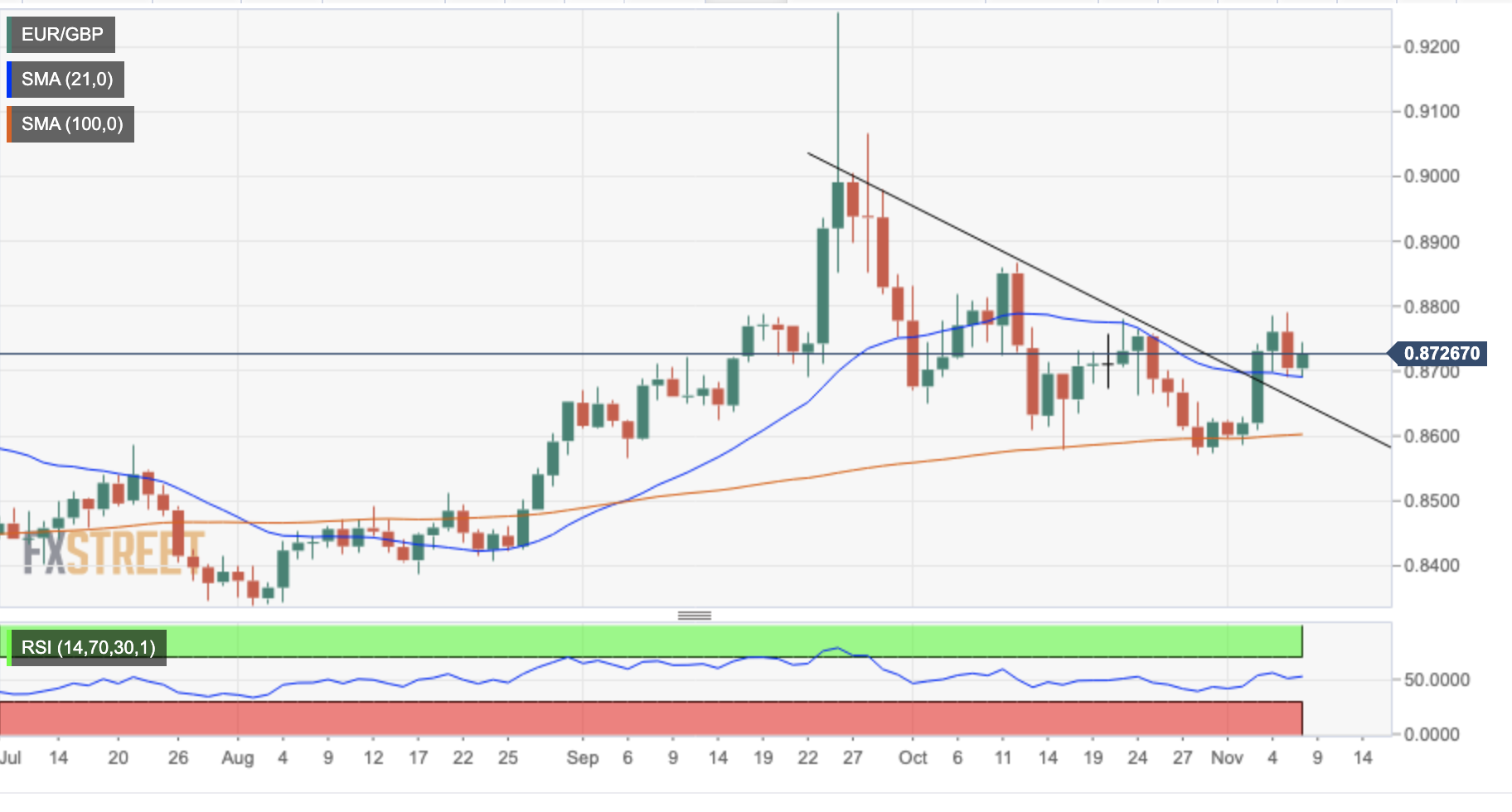 欧元兑英镑价格分析: 试图突破0.8745后遇阻,整理于0.8700上方