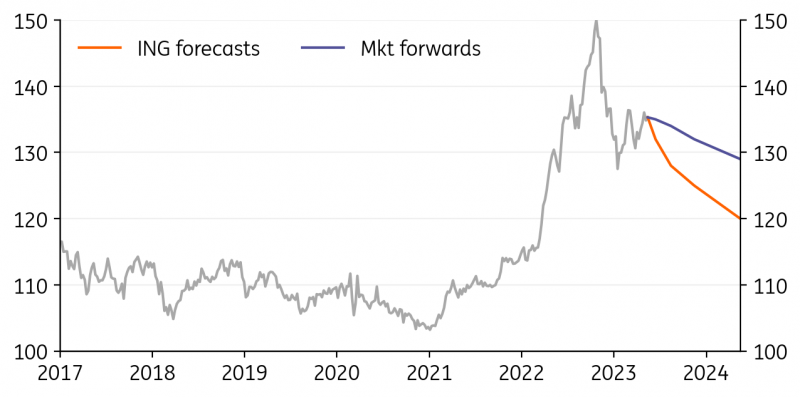 荷兰国际集团对美元/日元的年终目标现在是120。