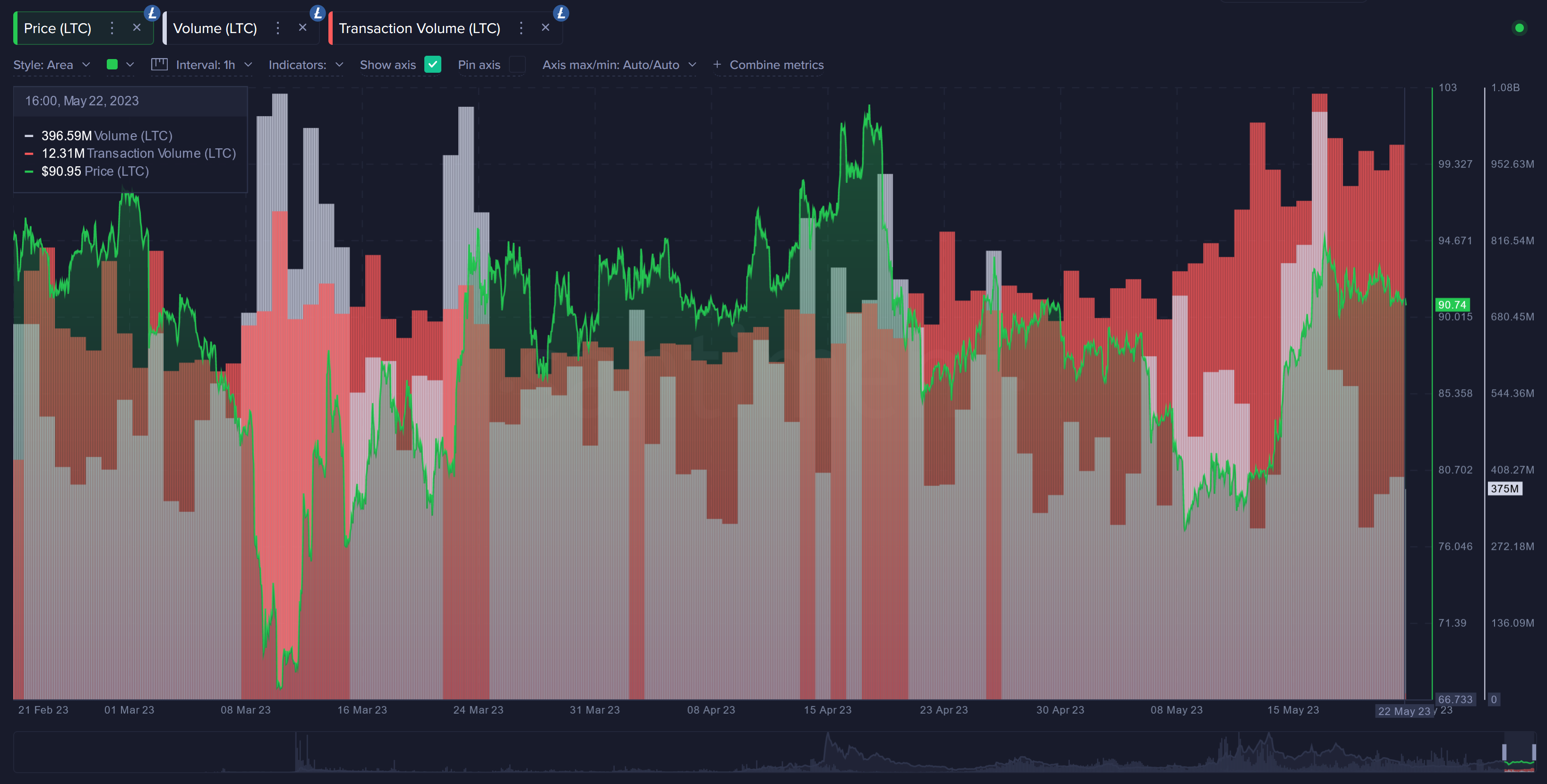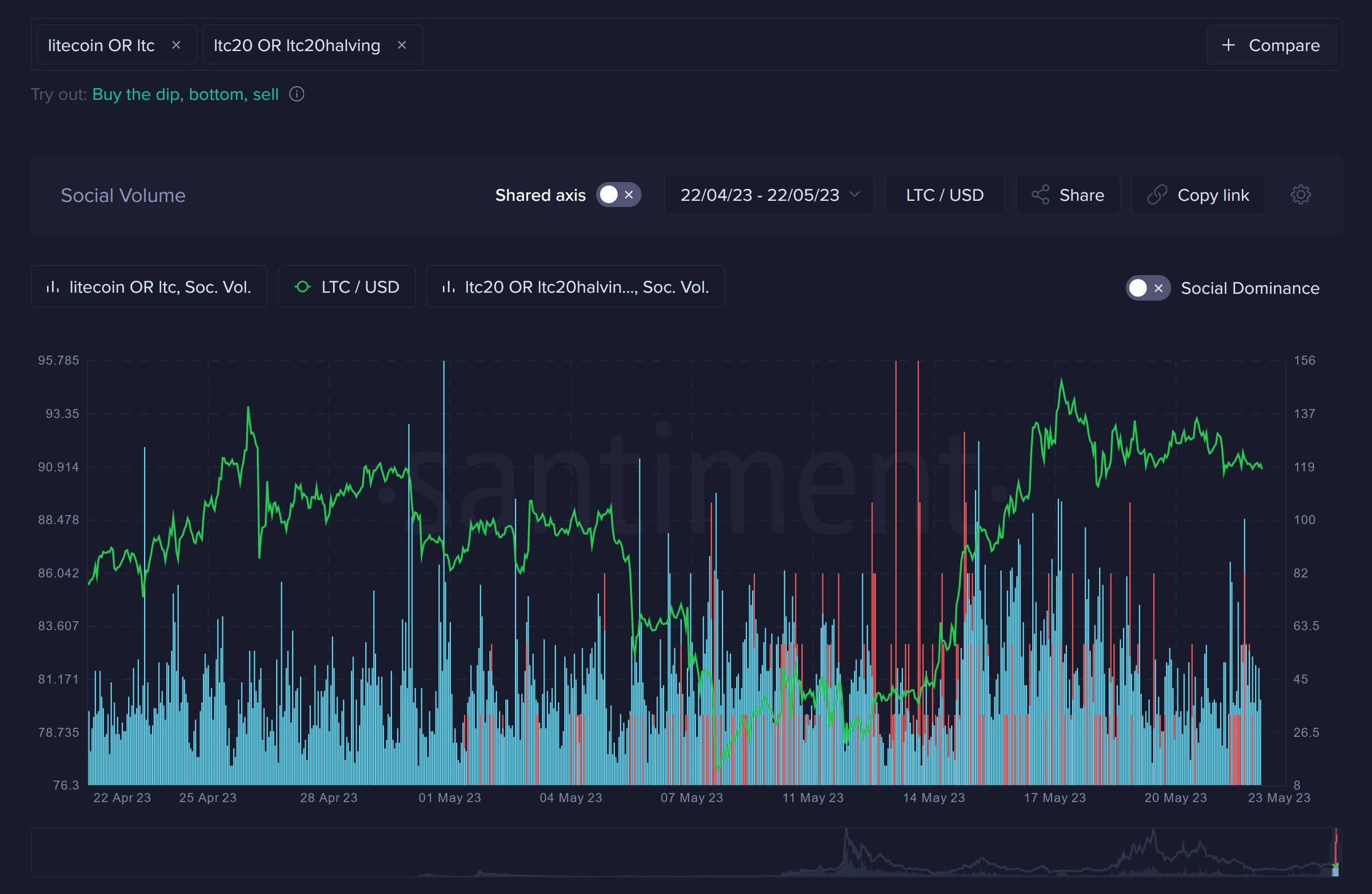 - 社交量,或在社交媒体平台上提到莱特币的数量。
