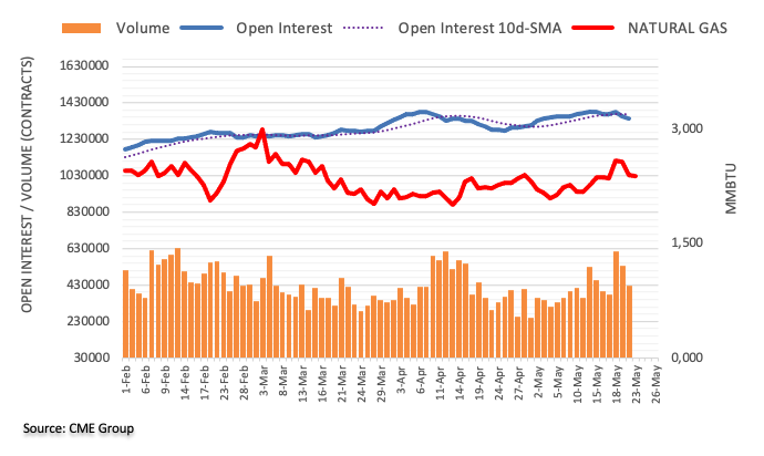 天然气价格在新的交易周𫔭始时,在未平仓合约和成交量萎缩的情况下出现明显回调。在这种情况下,短期内持续下跌的可能性似乎暂时无法令人信服。另一方面,强势的反弹应该会在2.7美元/百万英热单位附近遭遇艰难阻力。
