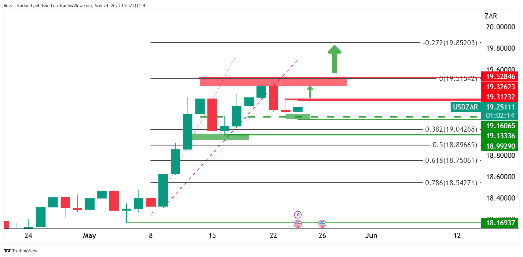 另一方面,如果美元/南非兰特依次突破19.3262和19.5285,将易于延续看涨,看涨倾向完整: