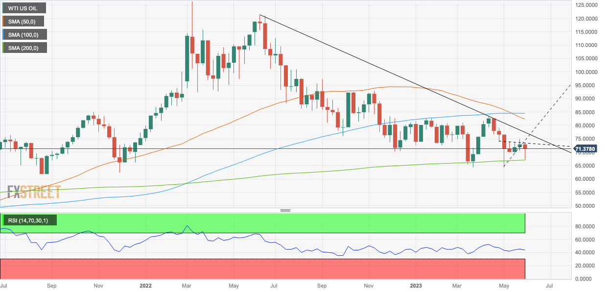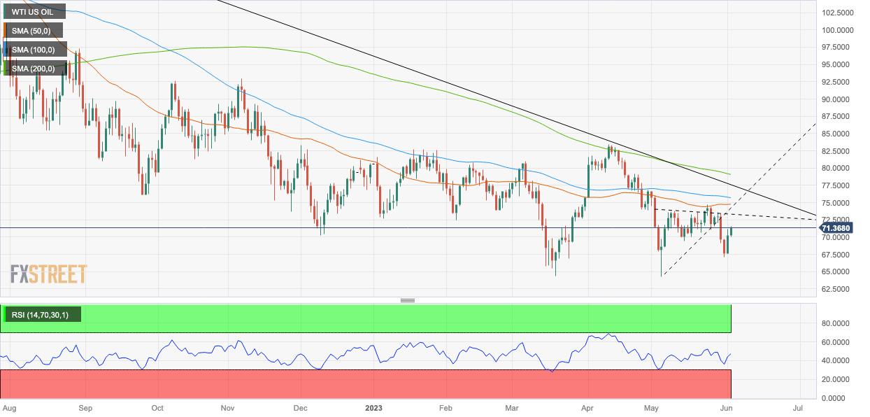 WTI石油在所有主要的日缐和周缐简单移动平均缐(SMA)下方交易,除了200周平均缐66.90美元。周三,它在这条均缐上找到了支撑,并𫔭始反弹。