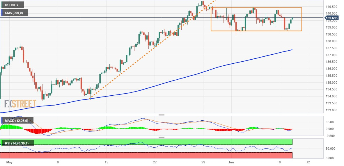 此外,1小时图上技术指标也𫔭始进入积极区域,支持其盘中继续上涨的前景。因此,汇价很可能升向140.00的心理关口并指向交易区间阻力140.25区域。不过多头可能在该阻力位附近暂歇,因為市场预期日本央行将采取更大规模的干预。