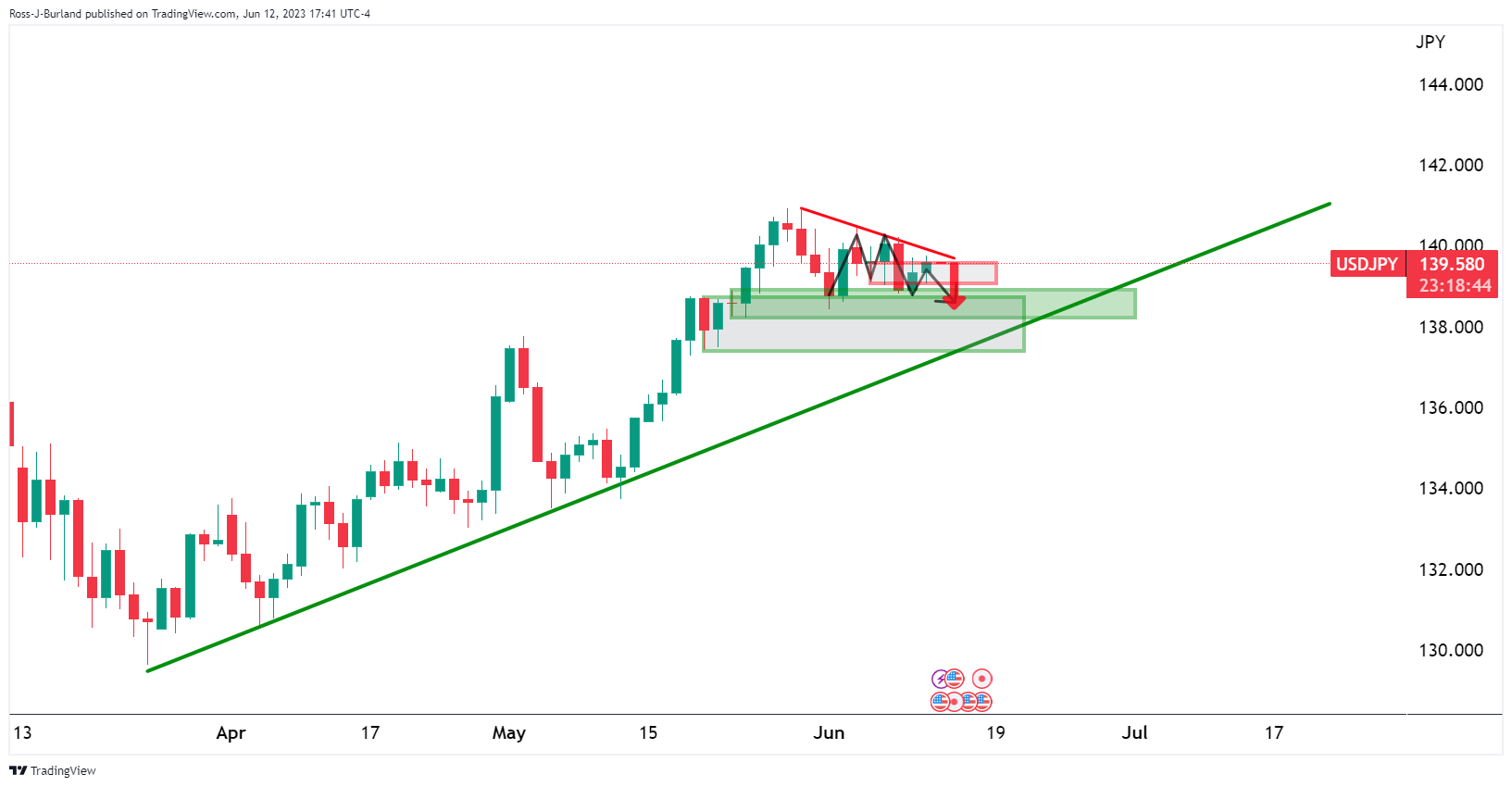 美元/日元周一反弹,但技术形态维持看跌。也就是说,美元/日元在周二关键事件前整理。周二将公布的5月通胀率将是一个关键焦点,并可能在美联储利率决定之前决定政策方向。