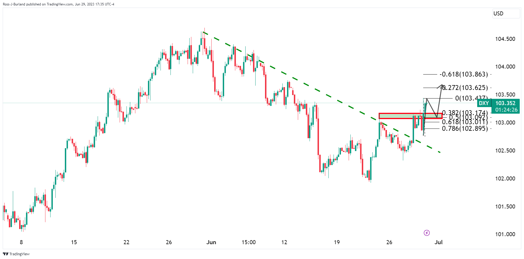 美联储主席杰罗姆-鲍威尔还表示,央行可能恢复加息路径,这对美元构成压力。