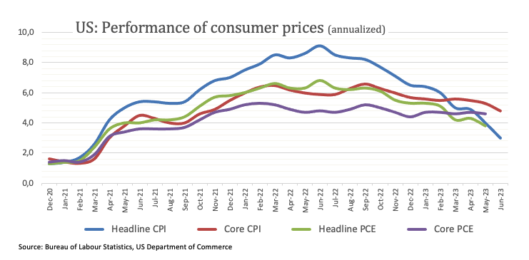 事实上,由于美国 6 月份通胀数据低于预期(周三发布),美元加速了下跌,这反过来似乎重新点燃了市场对美联储可能在短期内结束紧缩周期的可能性的押注.