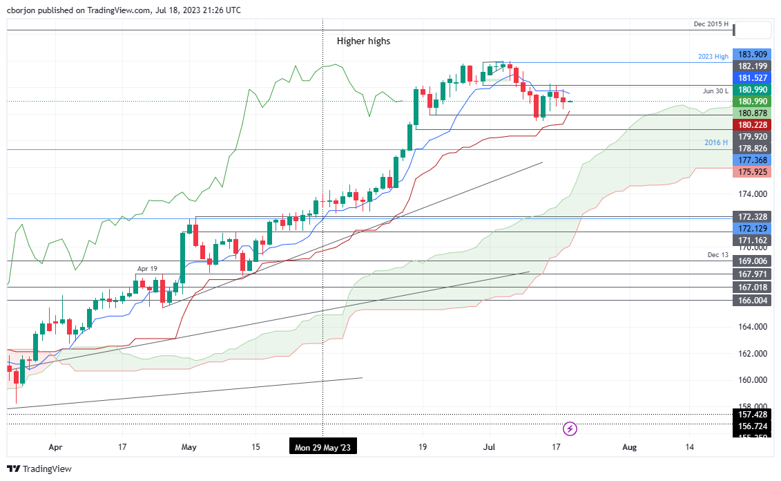 若要继续看跌,英镑/日元必须跌破7月17日低点180.36,随后是基准缐180.23。一旦跌穿,英镑/日元必须测试180.00,目标指向更低的价格水平。上行方面,英镑/日元若要重拾升势,第一阻力位将是转换缐181.52。一旦突破该水平,英镑/日元将测试6月30日的日低点182.20,随后是话(YTD)高点183.90。