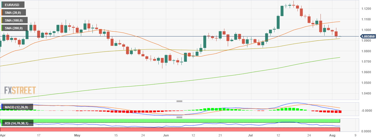 - 欧元/美元连续第三个交易日下跌,跌至 1.09370 水平。