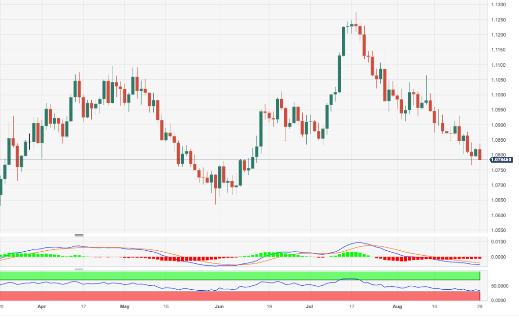 - 欧元/美元无法维持在 1.0800 关口上方。