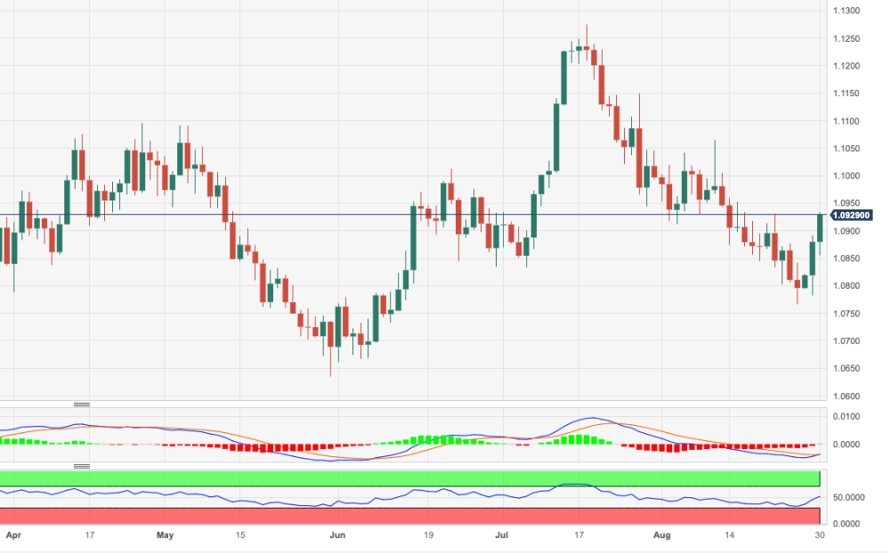该货币对目前的势头似乎有利于继续上行。 55 日均缐 1.0968 仍是一个暂时的阻力,然后是心理关口 1.1000 和 8 月顶部 1.1064(8 月 10 日)。
