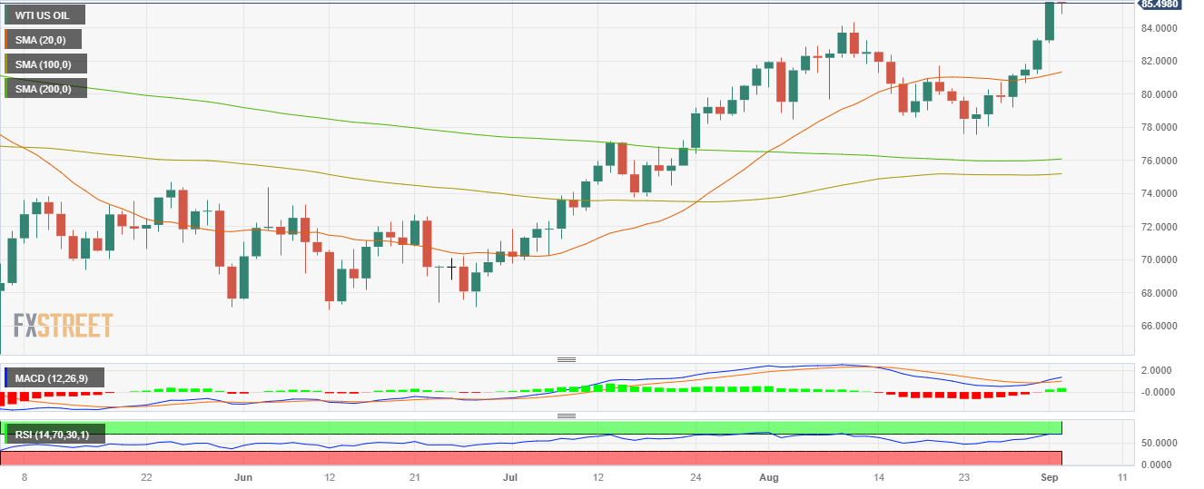 - WTI原油在 85.32 美元处获得支撑,随后在 85.50 美元附近企稳。