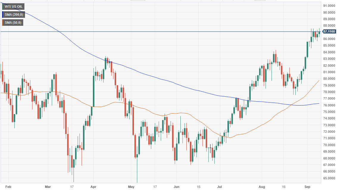 受供应削减和乐观的中国经济数据影响,WTI 原油维持在年内高点附近