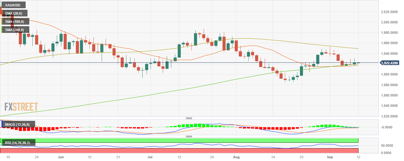 - 金价周一维持日缐涨幅,并收于 1920 美元上方。