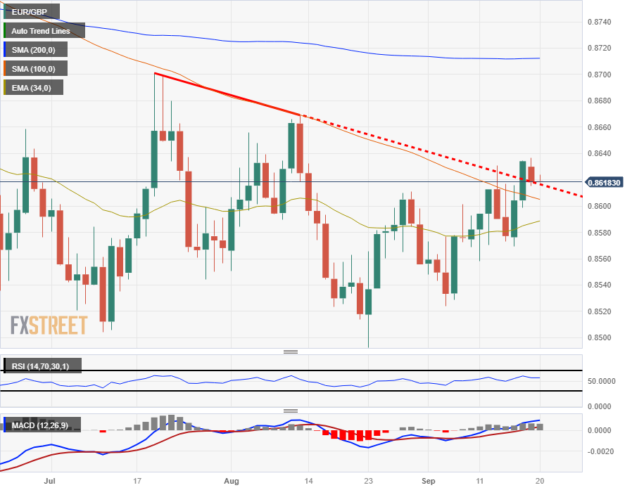 欧元/英镑周一表现强劲,但周二出现回落,欧元兑英镑周初明确实现果断看涨突破,但未能保持势头,目前正回调至 0.8620 附近。