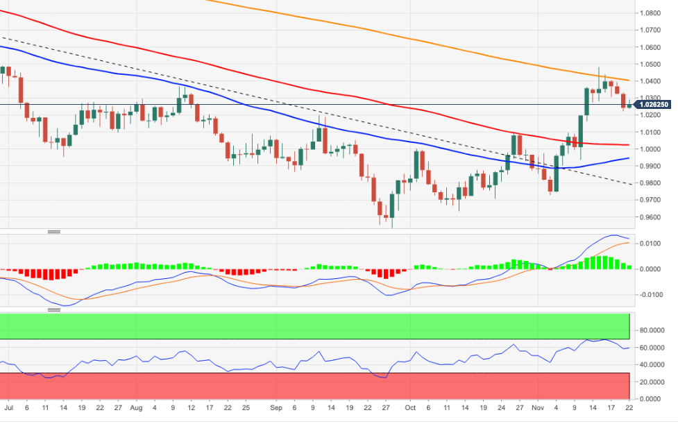周二,欧元兑美元回到积极区域,并攀升至关键区域1.0300附近。