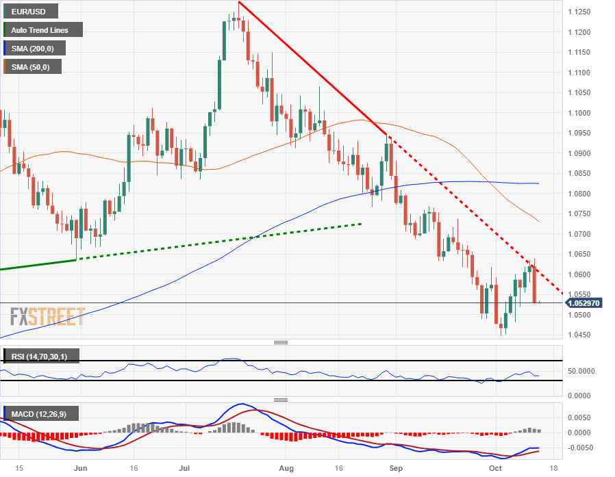 周四,欧元暴跌愈一个百分点,跌至 1.0530,并跌穿了目前持平于 1.0545 附近的 200 小时简单移动均缐(SMA)。