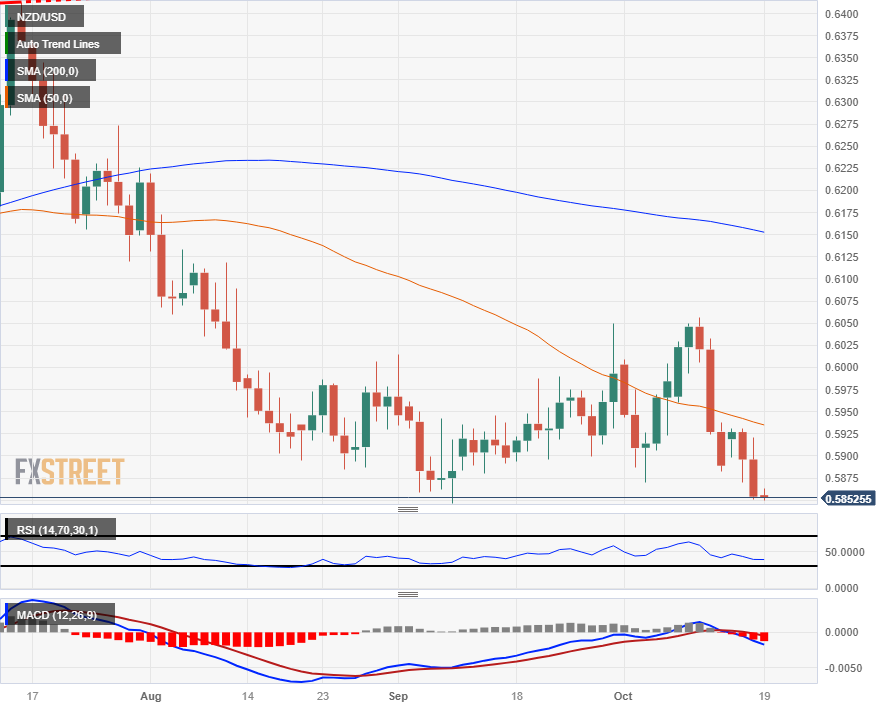- 纽元/美元跌破0.5846,距离创下2023年新低仅有几步之遥。