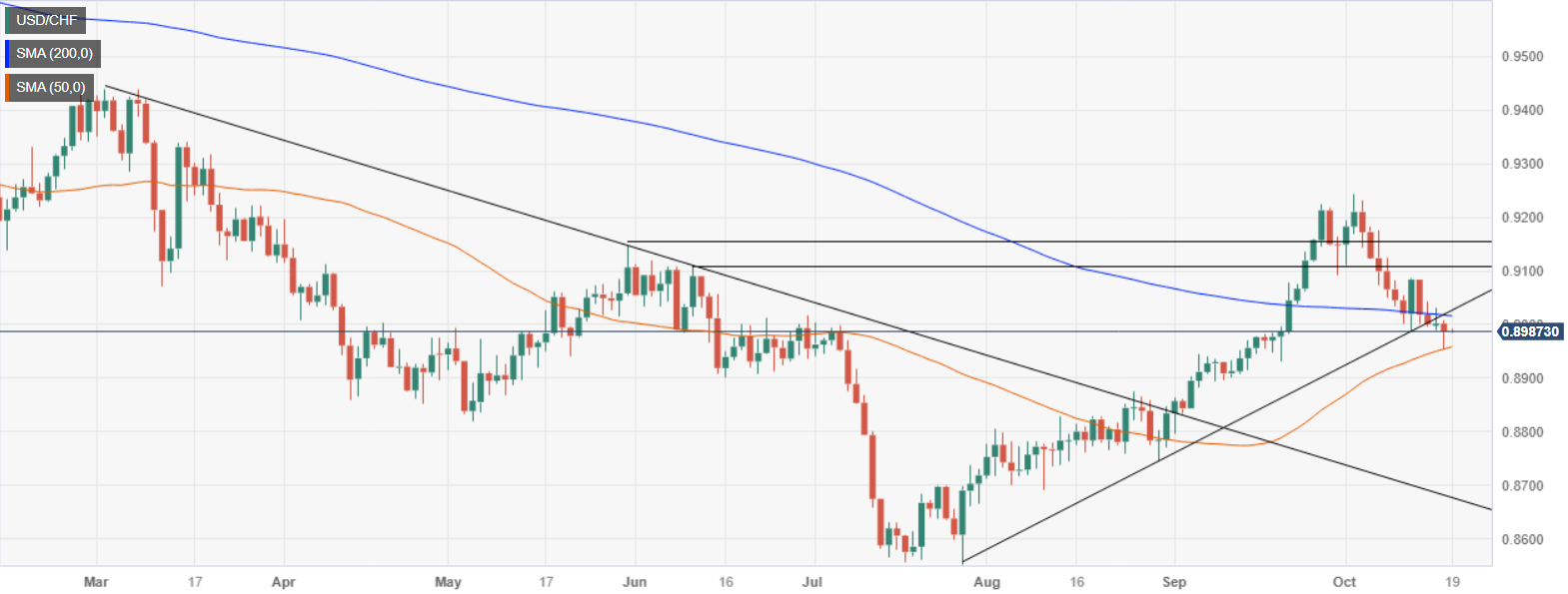 美元/瑞郎价格分析:跌破200日均缐,空头指向50日均缐