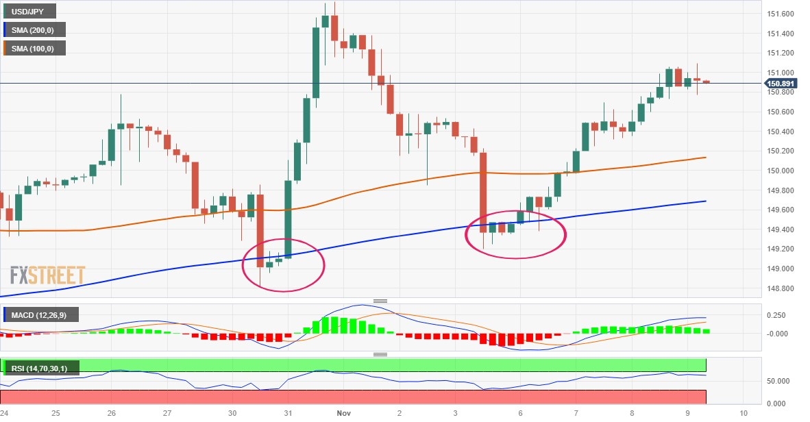 一些后续𧹒盘突破151关卡将确认建设性前景并让现货价格再度测试上周触及的年度高点151.70区域附近。下一个相关阻力接近数十年顶部(2022年10月),若突破该位,美元/日圆将进入未知区域并可能延续自年初𫔭始的涨势。