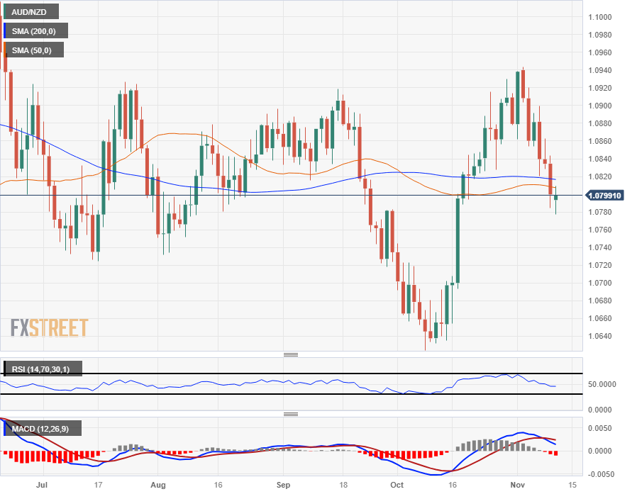 如果澳元/纽元进一步下行,将跌至 10 月低点 1.0640 附近,而如果空头继续施压,技术形态几乎未现技术支撑。