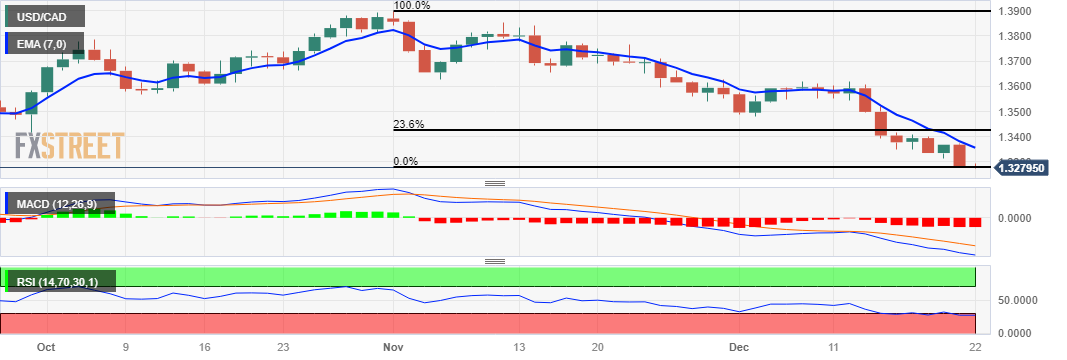 - 技术指标表明,美元/加元将进一步跌向主要水平 1.3250。