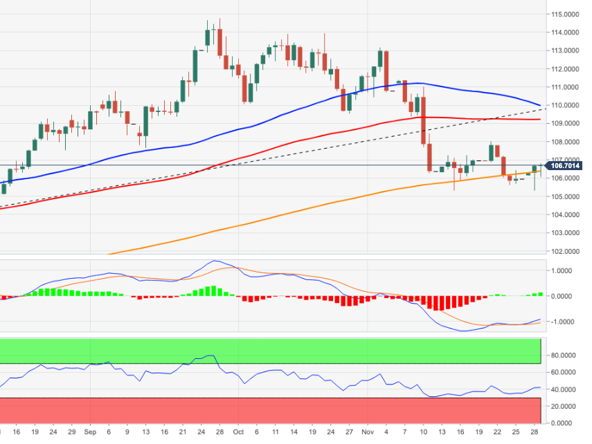 如果反弹继续,那麽美元可能会尝试重新测试周高点107.99(11月21日),然后是100日移动平均缐(今天位于109.12)。