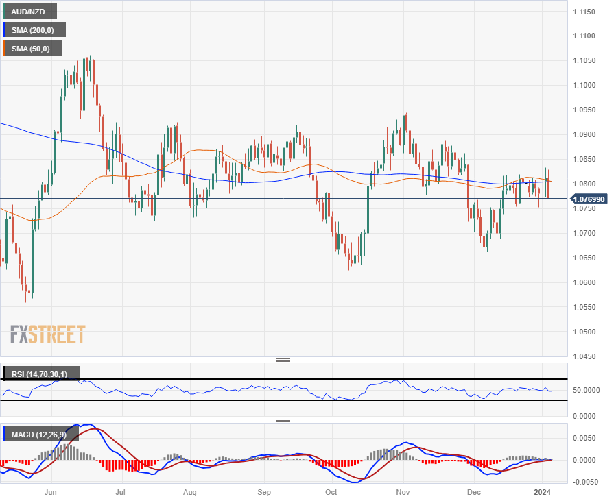 澳元/纽元周三走势摇摆不定,从略低于 1.0830 的近期高点跌至近期低点 1.0770 附近,周四早盘短暂测试 1.0760。